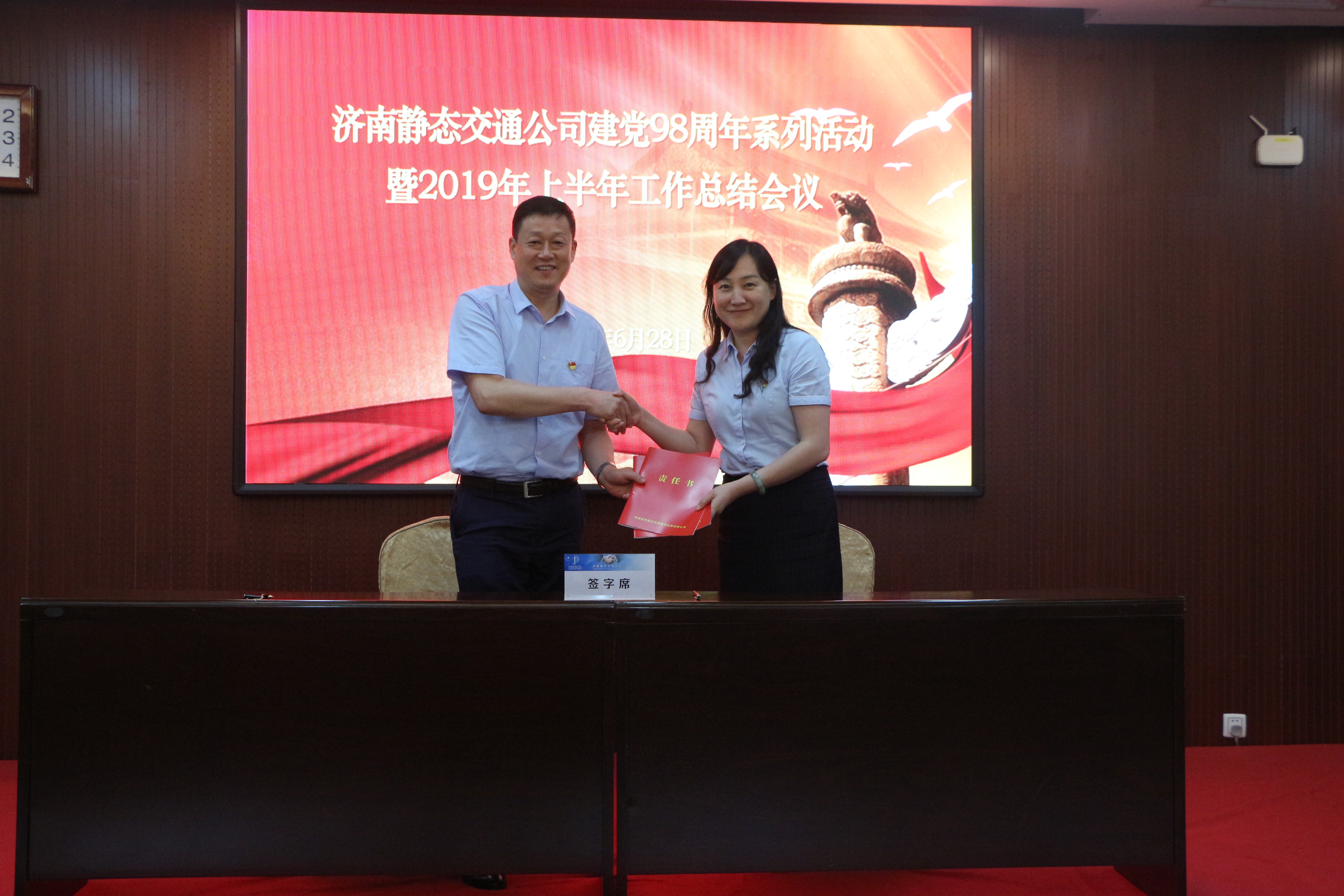 6月30日下午,濟(jì)南靜態(tài)交通集團(tuán)與歷城交警大隊在“七一”前夕,隆重舉行了“牢記初心使命、共譜警企新篇”黨建共建簽約啟動暨共建基地揭牌儀式。此次活動是濟(jì)南靜態(tài)交通集團(tuán)與歷城交警大隊圍繞“立足民生,為群眾解決停車難、停車亂問題”的目的,創(chuàng)新黨建工作形式和載體的一次全新嘗試,是全面貫徹落實(shí)“不忘初心、牢記使命”主題教育活動精神的全新舉措,也是雙方以黨建引領(lǐng)促進(jìn)拓寬交流渠道、深化警企合作,實(shí)現(xiàn)共融、共