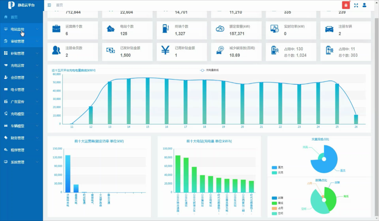 新能源充電設(shè)施監(jiān)管服務(wù)系統(tǒng)具備運(yùn)營(yíng)商審批備案、個(gè)人及企業(yè)購(gòu)車補(bǔ)貼、企業(yè)評(píng)級(jí)、電站驗(yàn)收等功能,實(shí)現(xiàn)對(duì)全市充電站數(shù)據(jù)的匯總監(jiān)管,補(bǔ)貼下發(fā)、掃碼充電、補(bǔ)貼使用、余額查詢等。
